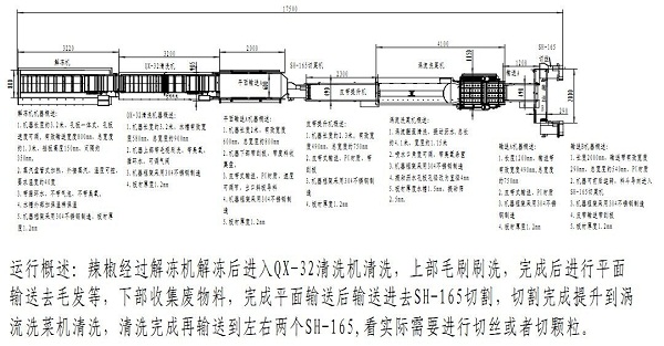 其定制生產線是(辣椒解凍機--氣泡清洗--平面輸送--切割--皮帶提升--渦流洗菜機清洗--平面輸送--切割)。
