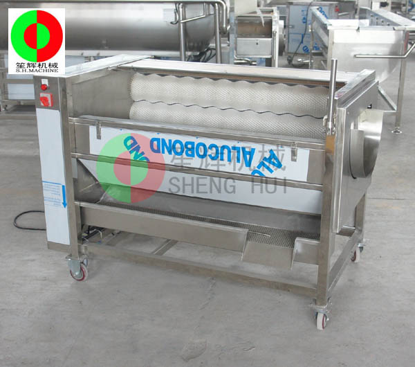 多功果蔬清洗毛刷機體采用不銹鋼制作,用戶可根據工藝要求任意調整網帶速度,從而使被清洗物得到相應清洗。可根據客戶要求,針對物料進行相應設計,采用毛刷將物料表面刷洗干凈。
