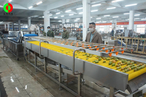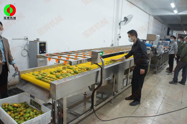 廣西客戶現(xiàn)場(chǎng)考察芒果清洗生產(chǎn)線完工測(cè)試