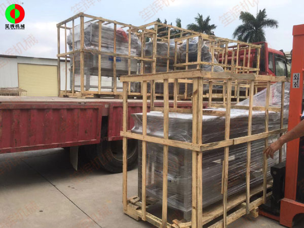 河南客戶訂購的大批蔬果清洗處理生產線順利出貨交付客戶!設備由多套渦流洗菜機、分選工作臺、提升機組成兩套蔬果加工生產線。