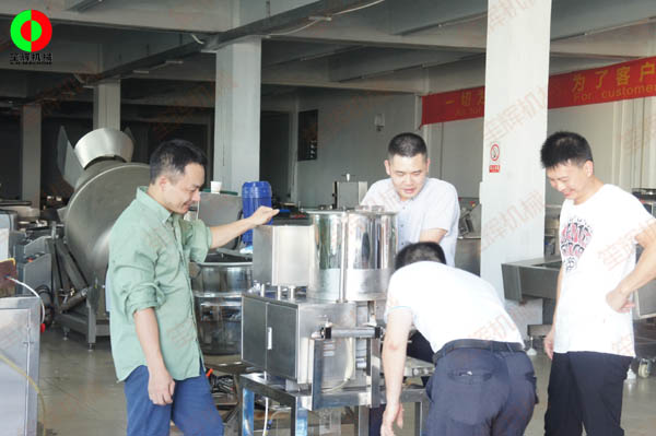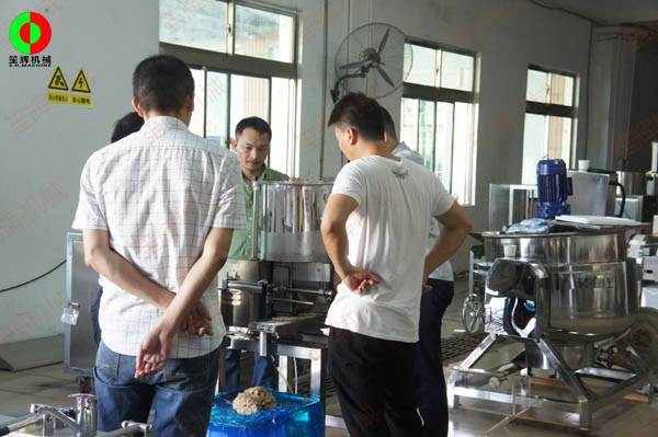 佛山客戶定購的肉餅成型機順利完工,客人現場物料測試后裝車出貨!