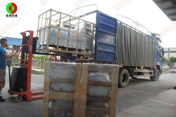 蔬果清洗機等一批食品加工機械裝車出貨!客戶訂購的一批氣泡洗菜機、切菜機等食品前處理加工切割清洗設備按期交付!
