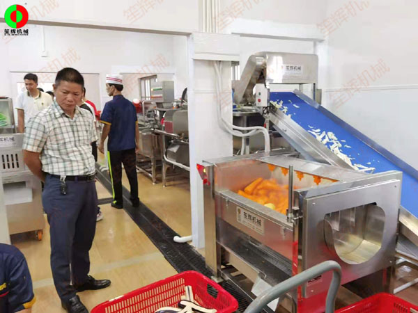 廣江湛江市HX大型凈菜加工配送中心,長期為當(dāng)?shù)匾恍┚频辍⒉宛^、學(xué)校飯?zhí)谩⒐S飯?zhí)玫裙?yīng)大批量凈菜,該客戶與我司簽訂生產(chǎn)設(shè)備供應(yīng)合作意向!公司按期經(jīng)營實際需求和生產(chǎn)工藝,量身定制設(shè)計完整的蔬果分選、切割、去皮、清洗加工生產(chǎn)線或單機設(shè)備;排骨切丁、清洗等食品前處理加工機械。我司派遣工程技術(shù)人員到場指導(dǎo)安裝和使用培訓(xùn)!