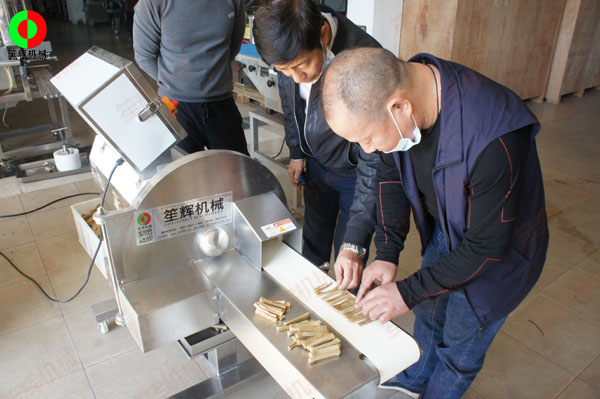 廣西某客戶于近日來廠測試酸筍切條加工設備!我司120SD多*用途切菜切肉機,進料和出料均采用輸送帶動方式,皮帶拆卸和安裝都非常方便快捷,利于工作完成后對機器進行清潔保養;出料口采用平面皮帶輸送方式,物料切割完后可以整齊地輸送出來,物料切割尺寸變頻可調,能很好滿足客戶加工工藝需求!它適用于大型蔬果加工配送中心、食品廠,配料佐料加工廠使用。