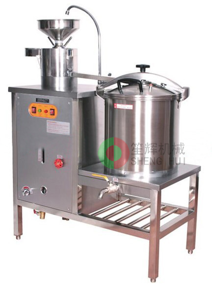 機器工作原理:將浸泡好的黃豆由磨漿機進行漿渣分離,分離后的豆漿在煮漿過程中,由豆奶機蒸汽包產生的蒸汽進行高溫去腥、均質、乳化,從而制作出新鮮的豆奶原漿。