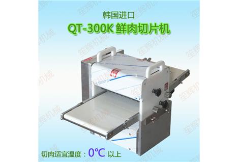 - 產品優勢: 鮮肉切片機QT-300K,它適宜0℃以上的鮮肉切割(避免帶骨),對大塊肉類進行加工,一次可分成片,二次進行可變成肉粒狀。切割厚度通過更換刀具可從3mm-30mm之間訂制。設備據有切割效果好,速度快,防水易清洗等等優點;同時設備美觀大方,操作簡單易懂,適合食品加工中心、大型酒店食市使用。
